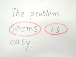おお、「~に見える」テイストの seems が加わりました。問題なのは seems も動詞(王)なことです。動詞(王)ふたつの文爆発崩壊状態です。