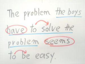 おわっと、The problem だけでは聞いてる相手に情報不足と本能的に感じたのでしょう、追加情報が加わりました。問題なのはこの追加情報の中に動詞(王)があることです。