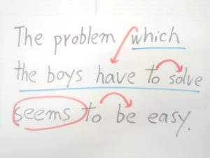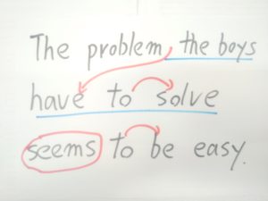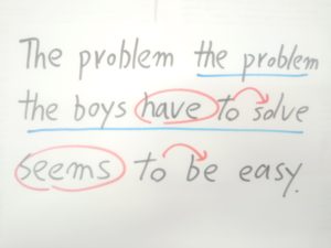 追加情報の中の the problem がの追加情報のブルーラインの中を移動、本体の The problem と合体しました。これで関係代名詞への変身準備完了です。