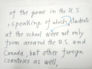 おお、たしかに Speaking の S が大文字です。ここで次の文になってました。