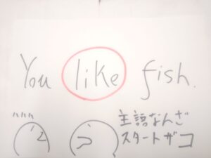 動詞の like と名詞の fish を、いっしょくたにしています。太陽と雑魚をいっしょくたにしとる。