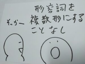 そりゃそうです、形容詞の happy を複数形になんて英語本能はしません。いやー、びっくりクリクリ。