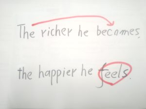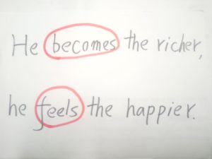 2番目の the も前に出ました。ふたつの the 比較級形容詞が前にそろいました。この瞬間