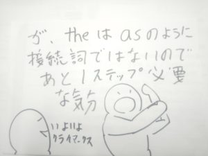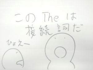なんと、通りすがりのあんちゃん、人類史上前人未到の分析をしちゃっています。The が接続詞だなんて、そんな。