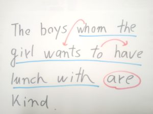 the boys が whom に変身、動詞停止力(王権停止力)を発動しました。