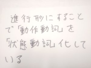 (進行形にすることで「動作動詞を状態動詞化している」ため)