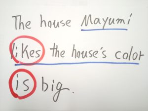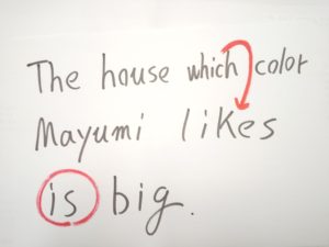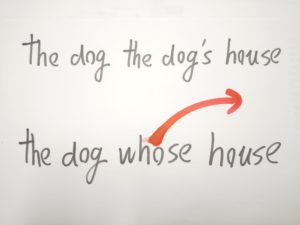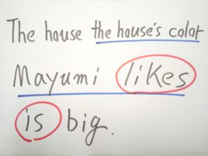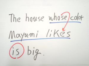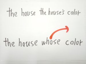 the house’s の s テイストを持つ whose に変身、動詞停止力(王権停止力)を発動させて動詞(王)をひとつにします。これにてOKです。このOK状態になってから、英語ネイティブの口からこの文が出ます。もちろん英語ネイティブ自身は無意識、光速以上の一瞬です。