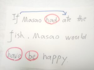 すさまじく合理的に機能する英語ネイティブの方々の英語本能、had の後ろの ate を eaten にしてしまいます。