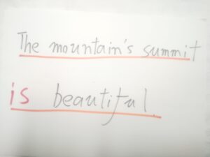 the mountain’s が関係代名詞 whose に変身、動詞停止力(王権停止力)を発動です。