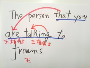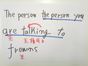 もうひとつの文も、王がひとりになりました。よかった、これにてOKです。おっと、The person を本来の位置に戻しましょう。合体のために前に出てきていました。