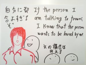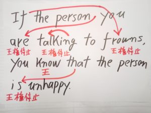 ではこの文のネイティブの心中での形成過程を、詳細に検証してみましょう。to frowns の謎が解けます。