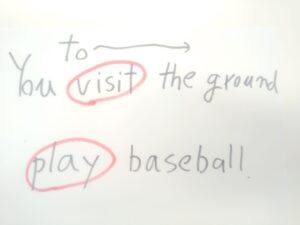 このタイミングで、もうひとつ動詞が英語ネイティブの心に浮かんだんですか?