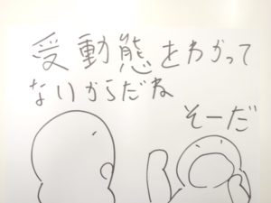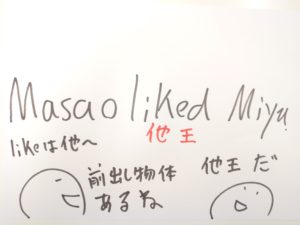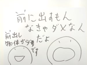 こちらは前に出すもんあります。他王(他動詞)なので、直後に 前に出すもん がネイティブの心に浮かびます。