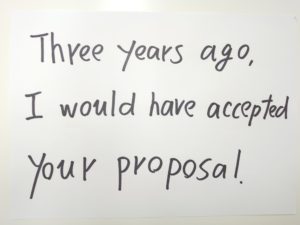 ~だったなら、~だったのになー テイストの文です。この文の propose は 結婚の申し込み というテイストです。