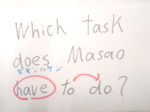疑問文のためハケンに出していたギモンハケンの does を、ハケン元の have に戻しました。一人のウワサテイスト持ちのギモンハケン does が戻ってきたので、has になりました。この瞬間