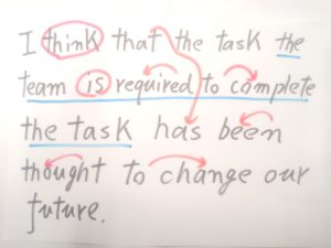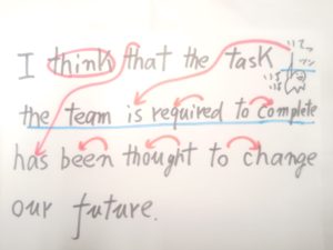 追加情報の中にある the task 2号が移動、基本文にある the task 1号と合体しました。関係代名詞への変身準備完了です。(注3)