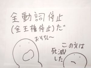 英文を死滅させる、恐怖の全動詞停止(全王権停止)です。ひえ~。
