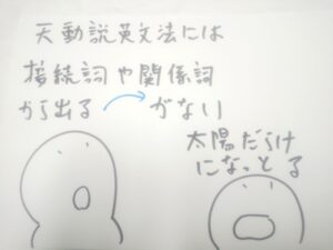 天動説英文法では短い文の中に太陽が、心臓が、たくさんあります。この時点でわかりにくい、とても恐ろしい状態ですが