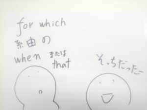お、for which を関係副詞 when にしました。for を前への移動に同行させてきているので、これが可能です。